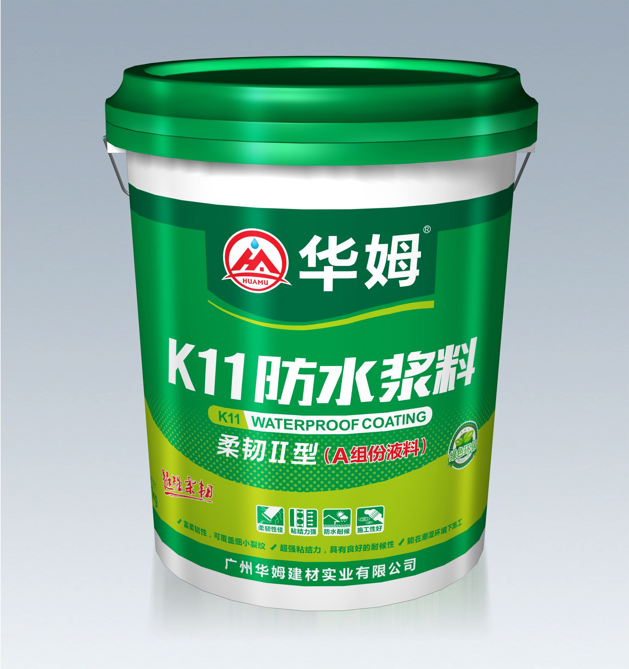 本產品是雙組份華姆K11防水漿料(柔韌Ⅱ型)的A組份(液料),由聚合物乳液、精選助劑配制而成,與華姆K11防水漿料(柔韌Ⅱ型)的B組份(粉料)搭配使用,將液料和粉料以一定的比例配合后形成一層柔韌性防水膠膜,該膠膜對混凝土和砂漿有良好的親和性,能與之形成緊密牢固的永久性結合,阻止水的滲透,從而達到優(yōu)異的防水效果。